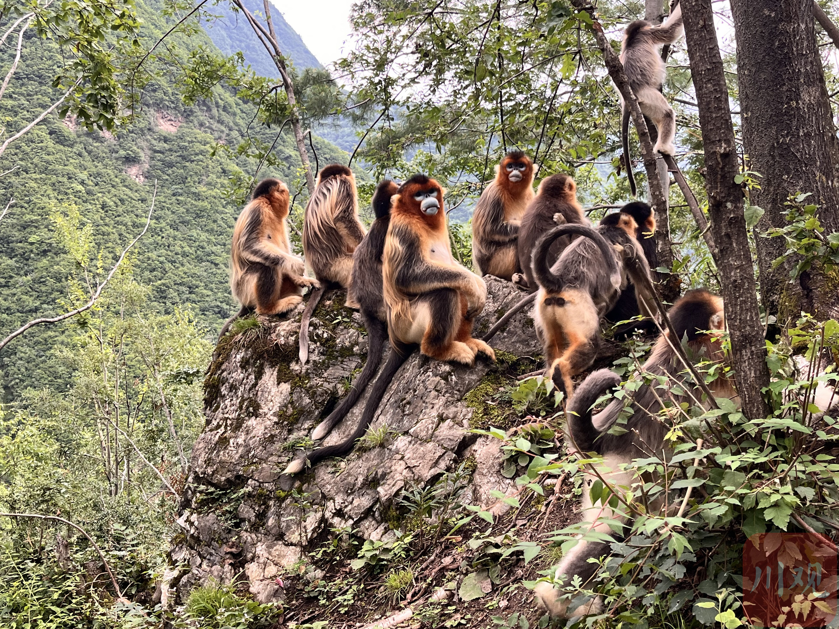 他的身边,还围坐着十几只川金丝猴。它们,来自附近活动的7个“家族”、70余只川金丝猴组成的猴群。
