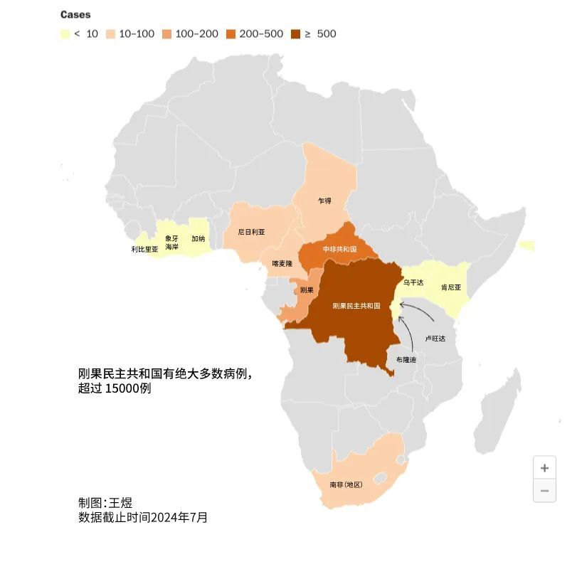 非洲猴痘疫情。澎湃新闻 王煜 制图