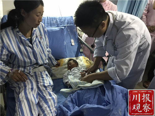段泓宇告诉记者:这是一名出生仅36天的小男婴,他和26岁的爸爸妈妈从泥石流中逃生。“刚送到茂县人民医院时,娃娃口腔里,鼻子里都是泥土灰尘,X光片检查显示肺炎。”段泓宇说,这是吸入性肺炎,是在泥石流中误吸导致的。“虽然目前娃娃生命体征还算平稳,但恐怕他吸入的粉尘引起化学反应,这里条件有限,准备连夜用新生儿转运车送回医院进一步救治。”