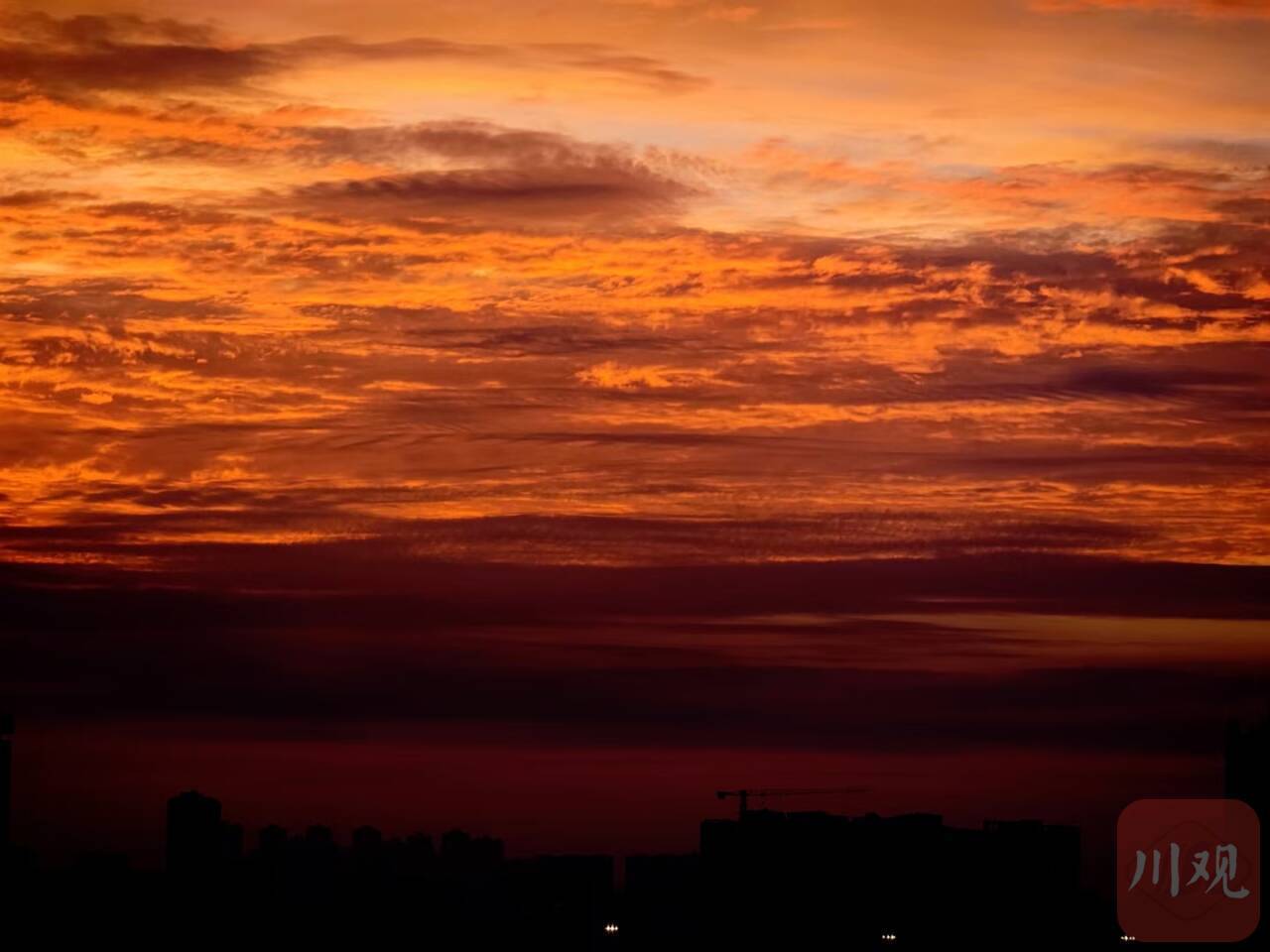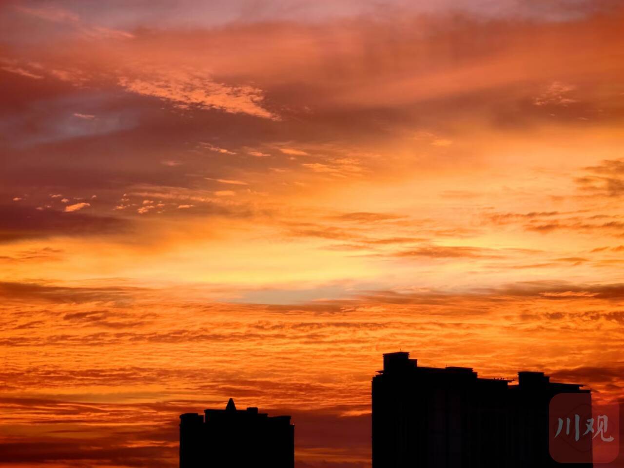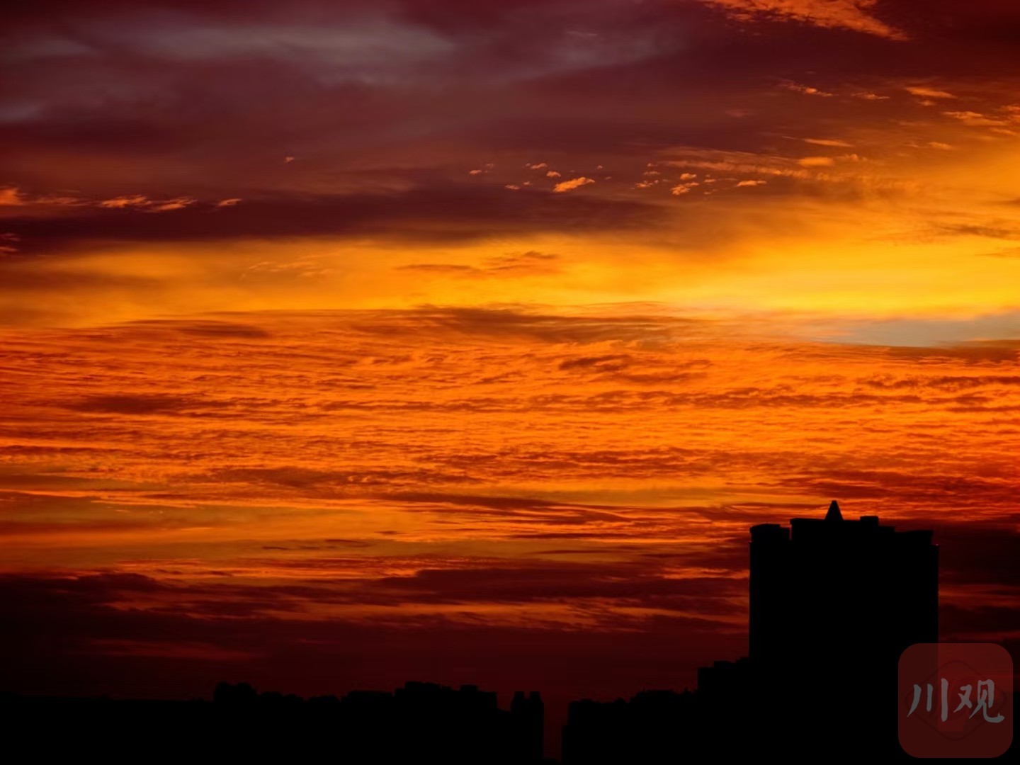 8月16日清晨,成都的天空迎来炫丽的朝霞。天空布满火红的云霞,太美了↓↓↓