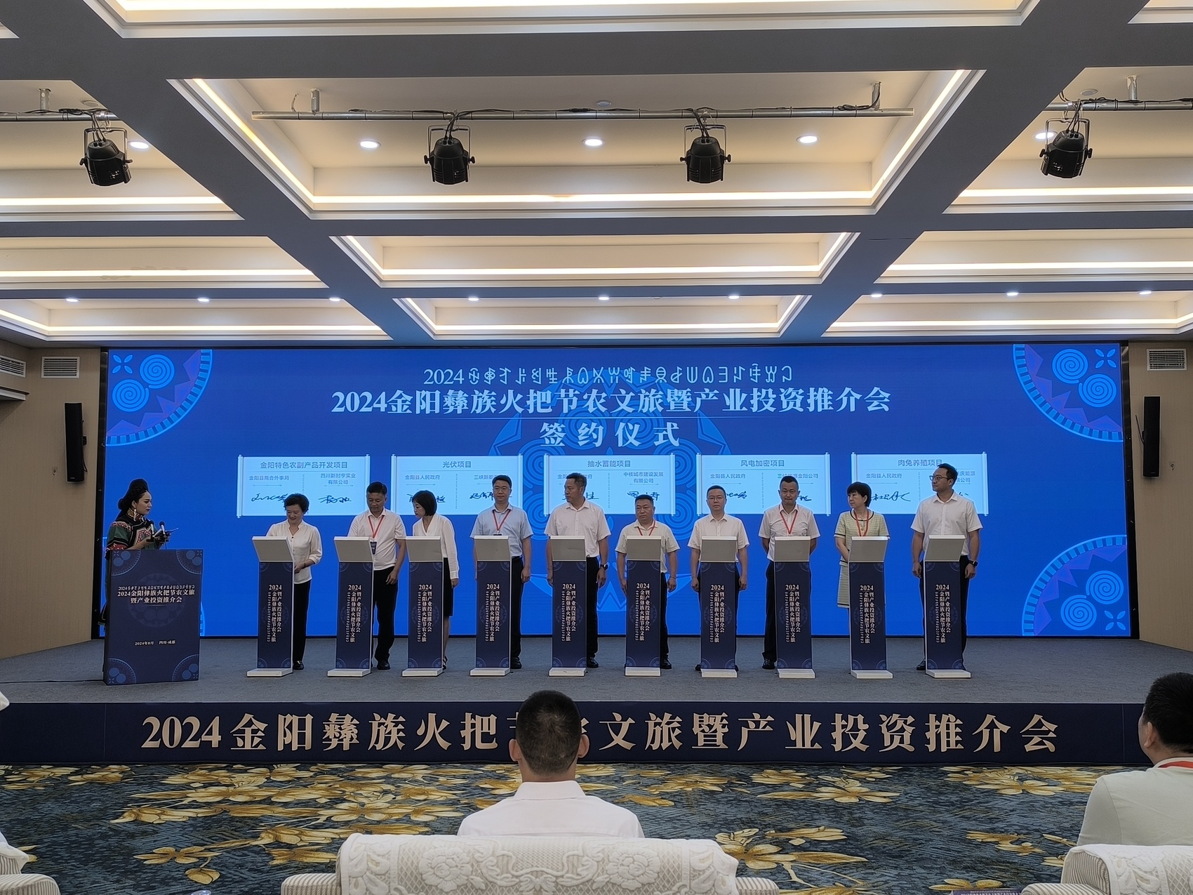8月15日,在蓉举行的2024金阳彝族火把节农文旅暨产业投资推介会上,10个项目进行了签约,其中既包括政企间的合作,也包括金阳县当地企业与外地企业的合作,涵盖特色农副产品开发、光伏、风电加密等产业领域。
