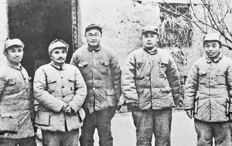 1948年11月16日,为了保证淮海战役的胜利,中共中央和中央军委决定由刘伯承、陈毅、邓小平、粟裕、谭震林五位同志组成淮海战役总前委,邓小平同志为总前委书记。图为淮海战役五人总前委成员,左二为邓小平同志(资料照片)。