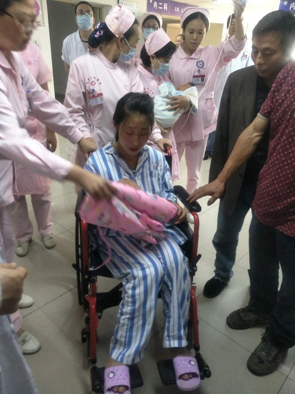 6月25日上午10点,在茂县6.24高位远程崩滑碎屑流灾害中获救一家三口,新磨村村民乔大帅、妻子肖燕春,还有他们36天大的儿子乔道淳从茂县人民医院转院到四川大学华西第二医院继续接受治疗。