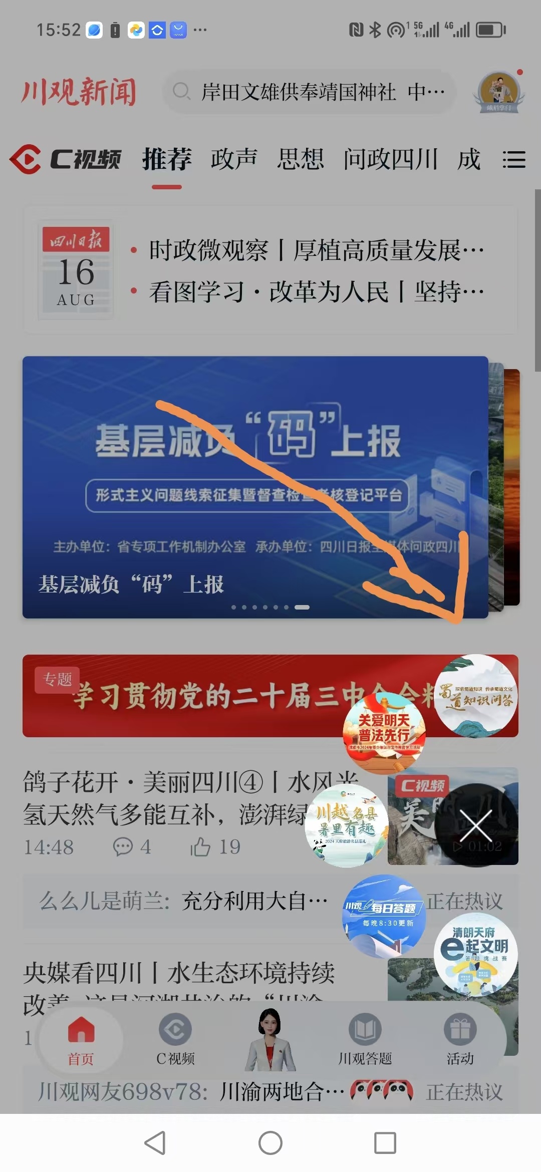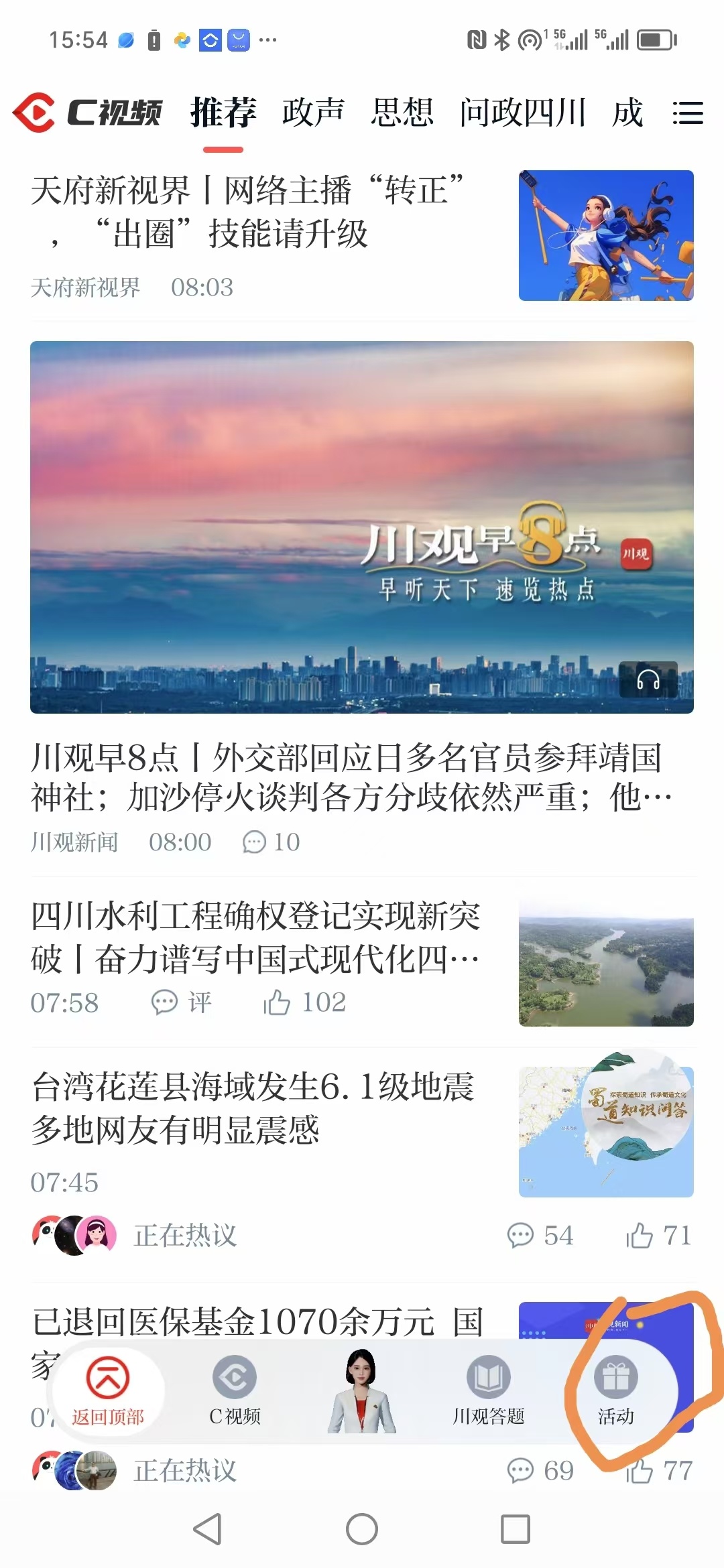方式三:在川观新闻首页,点击右下角“活动”,进入活动中心,找到蜀道知识问答活动图片,点击即可参与活动;