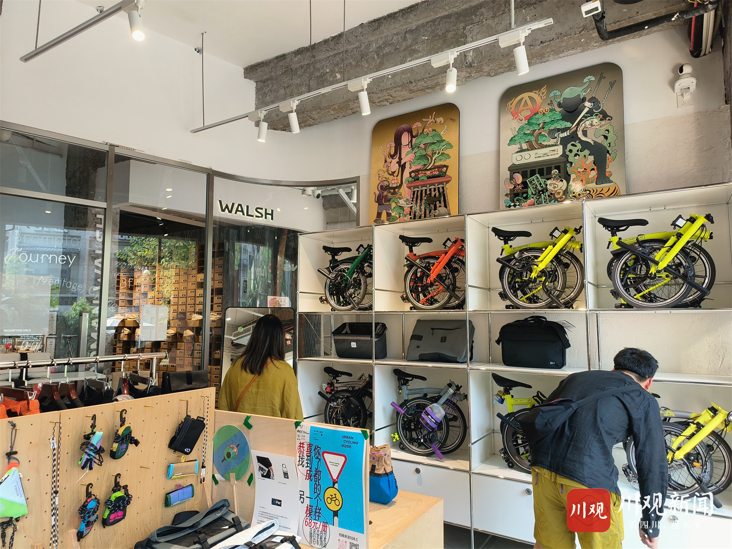 14日下午,记者来到位于青羊区斌升街的创新商业体“028.c青年创意社区”。“我们不只是销售折叠自行车,还有各种骑行周边产品,以及提供改装、保养服务。”该商业体自行车零售业态相关负责人介绍,“我们每周都会举办骑行社群活动。每周三下午5点开始报名,很快就会报满,随后还有坝坝观影活动。”
