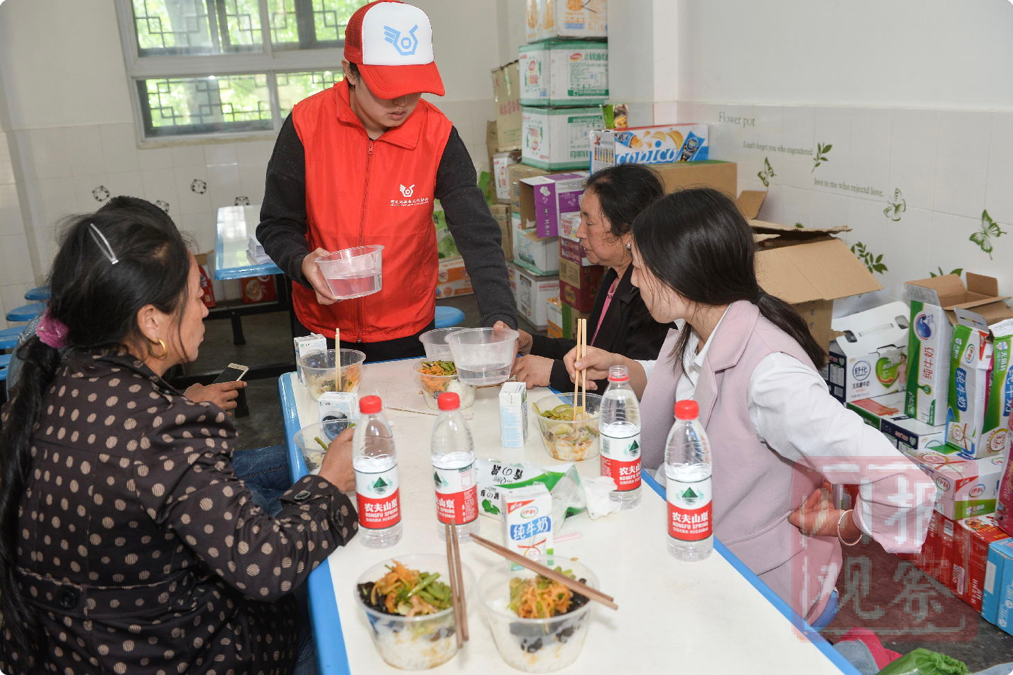 村民自发为安置点及救灾现场送饭送菜,该村90名妇女组织的后勤餐食保障工作全面展开,并接收平武县水晶镇黄羊蔬菜基地六名人员帮厨,已提供800多人次的早、午餐供应。