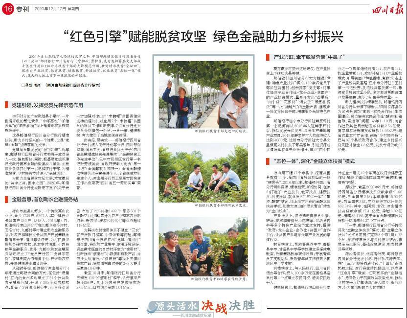 这是邮储银行四川省分行践行精准扶贫、助力乡村振兴的一个缩影,也是“党建+金融”加速落地的成果。