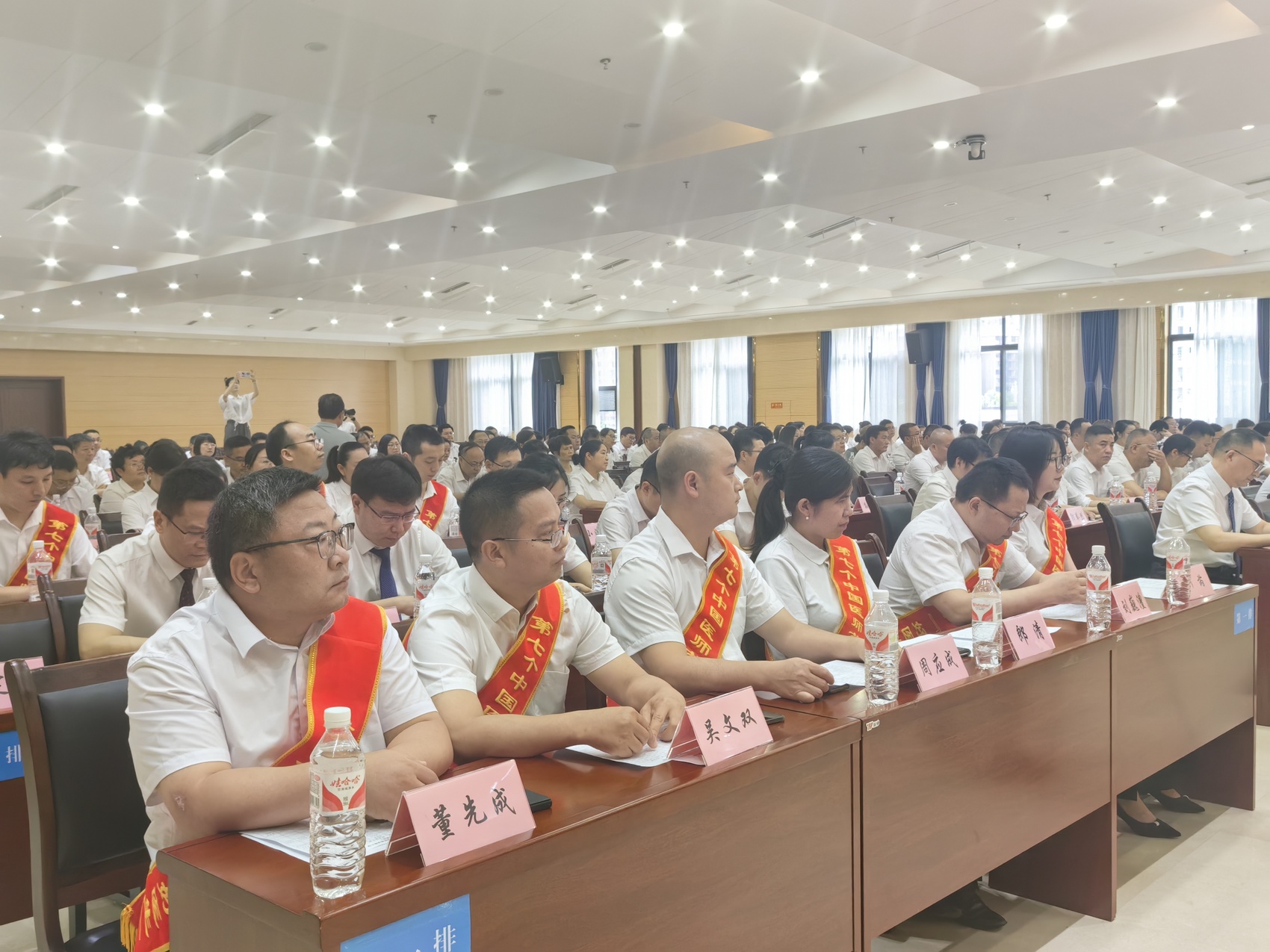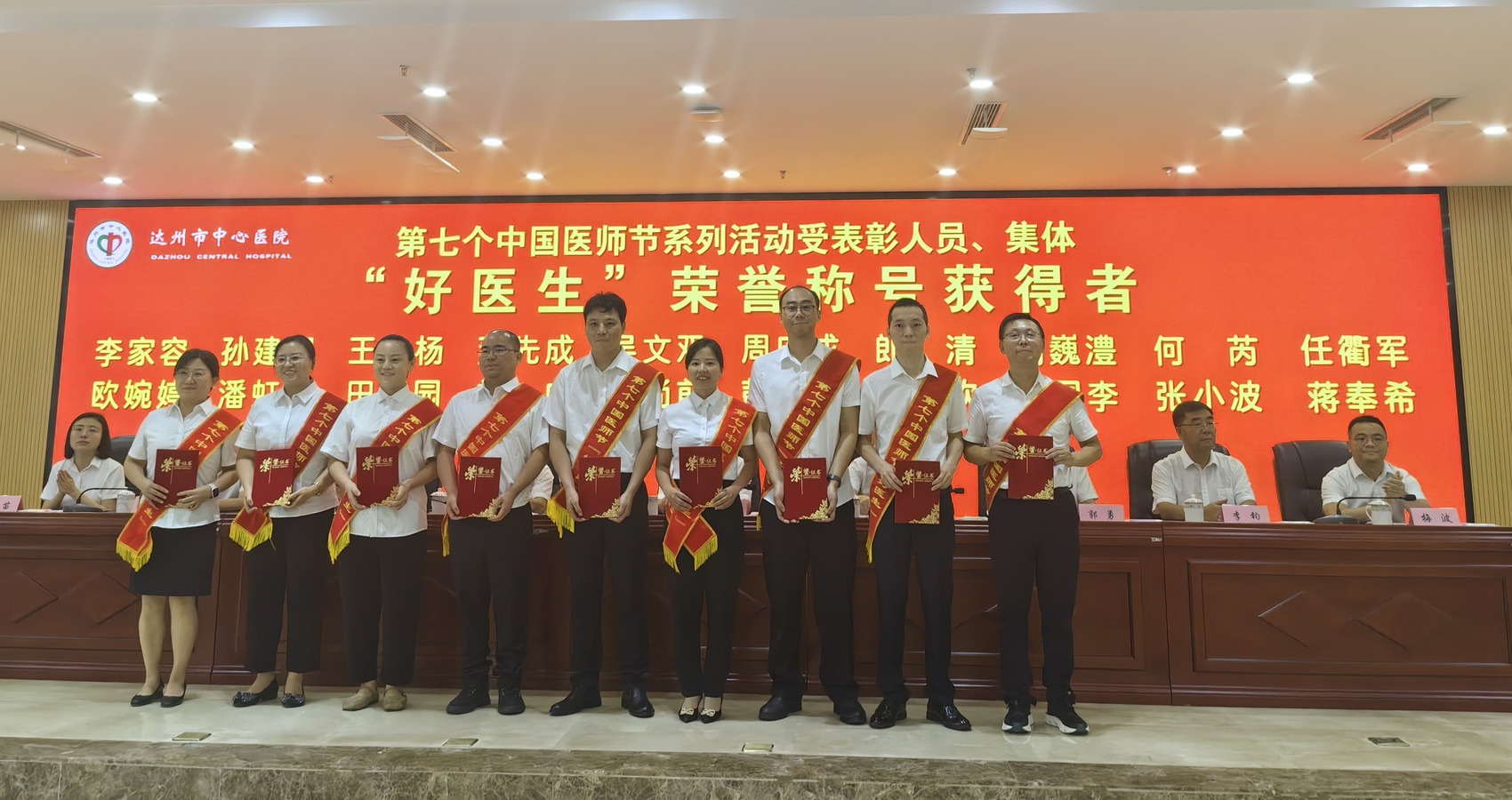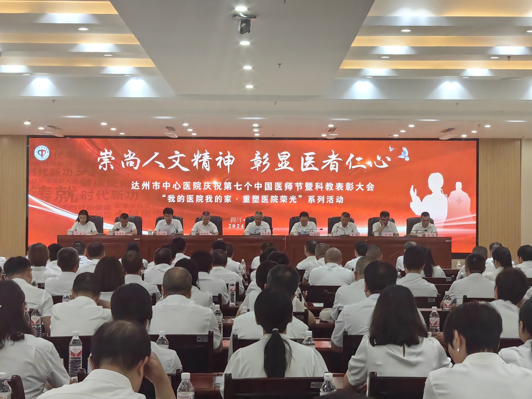 “敬佑生命,救死扶伤,平等仁爱,尊师重道……”8月18日,在“崇尚人文精神 彰显医者仁心”的达州市中心医院庆祝第七个中国医师节暨科教表彰大会“我的医院我的家·重塑医院荣光”系列活动中,来自医院国家级、省级/川渝共建临床重点专科建设项目科的医师代表们走上主席台,右手握拳,重温《中国医师宣誓誓词》。