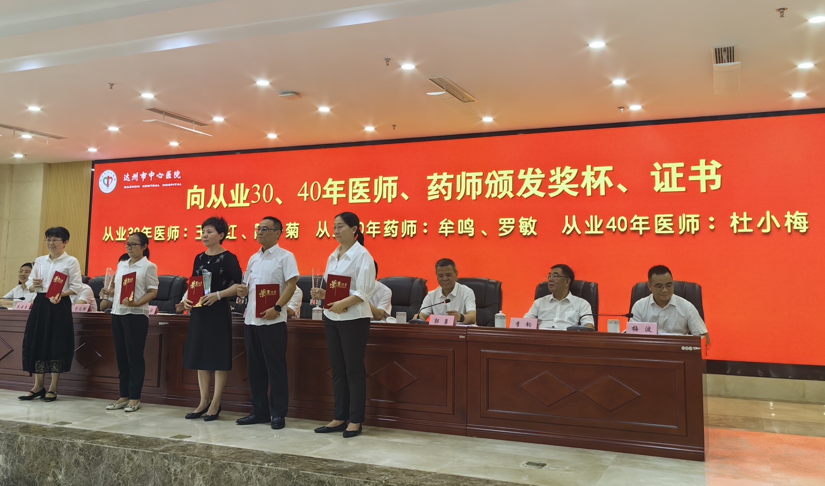 在表彰环节,医院对“好医生”荣誉称号获得者、先锋手术“能手”、2023年度科研表彰项目、“从业30年、40年、50年的医师、技师、药师”等多个先进个人和集体现场颁发了荣誉证书。