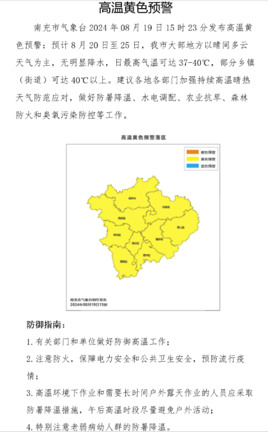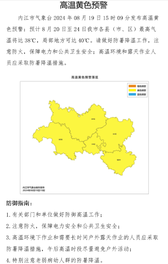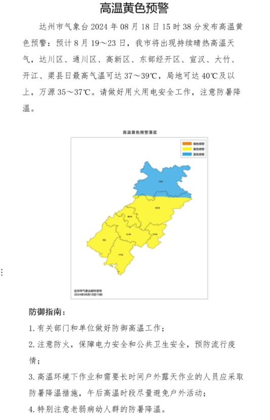 高温黄色预警:资阳、南充、内江、广安、宜宾、达州