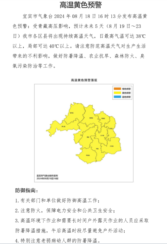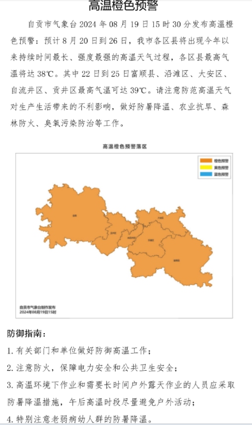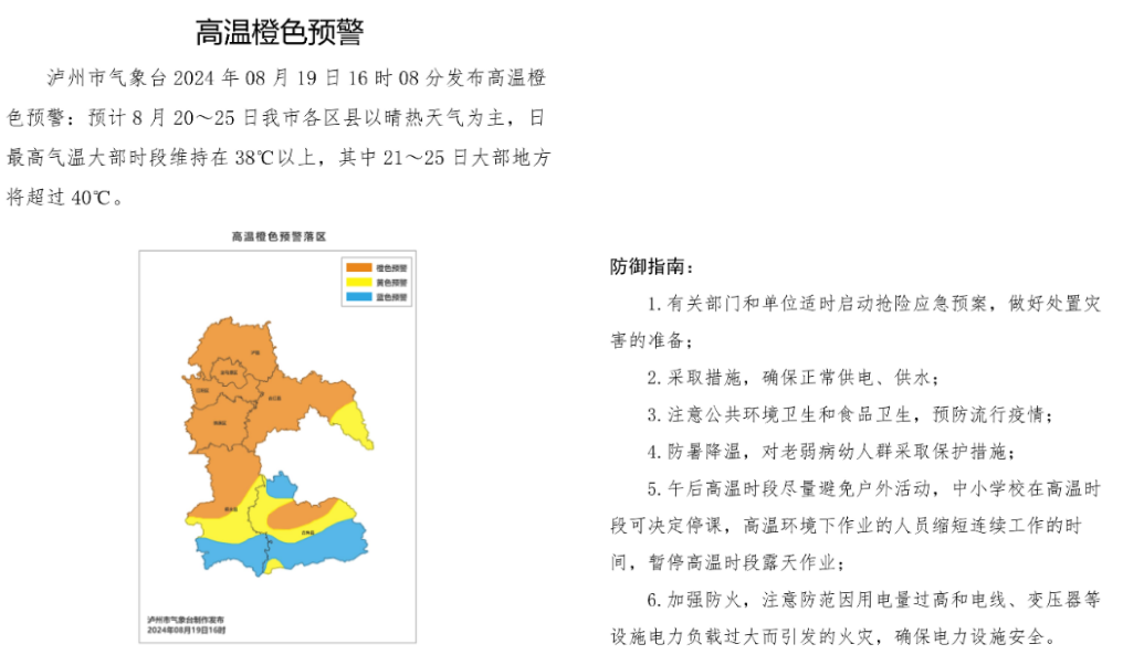 高温橙色预警:自贡、泸州