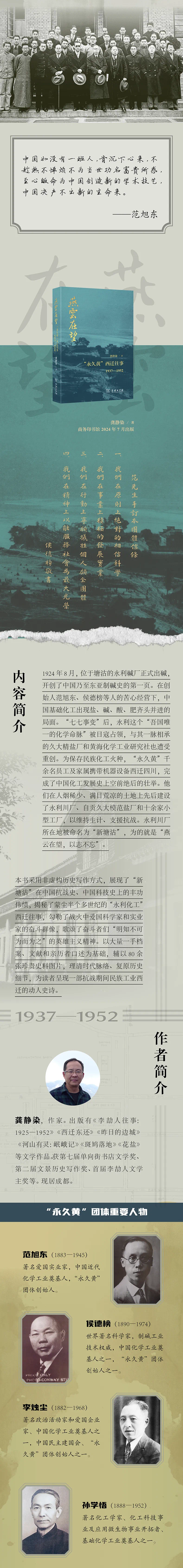 该书以抗战爆发后,“永久黄”西迁四川五通桥历史往事为“经”,以大量的一手档案、文献、亲历者口述、珍贵史料图片为“纬”,纵横勾连,全景式地展现了“新塘沽”在中国抗战史、中国科技史上的丰功伟绩。半个多世纪的“永久黄”西迁往事犹如一幅栩栩如生、跌宕起伏的绵长画卷,引领读者穿越回烽火连天的年代,重走范旭东、侯德榜等“永久黄”团体成员,在国难当头时的英勇抉择与辉煌成就之路,感受那份跨越时空的家国情怀。