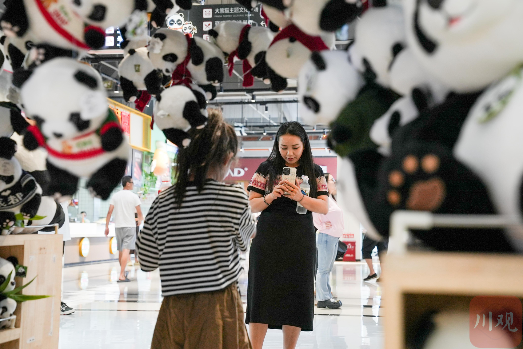 游客在服务区内的特色商店购物。