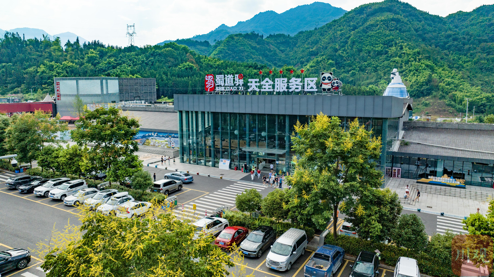 雅康高速天全服务区围绕“熊猫家园”与“G318国民公路”两大主题进行了精心打造,不仅为游客提供了一个休憩的场所,更成为一个集吃、住、行、游于一体的多元化旅游目的地。服务区内引入了多个知名餐饮和户外服饰品牌,为游客提供了高品质、多样化的选择和体验。