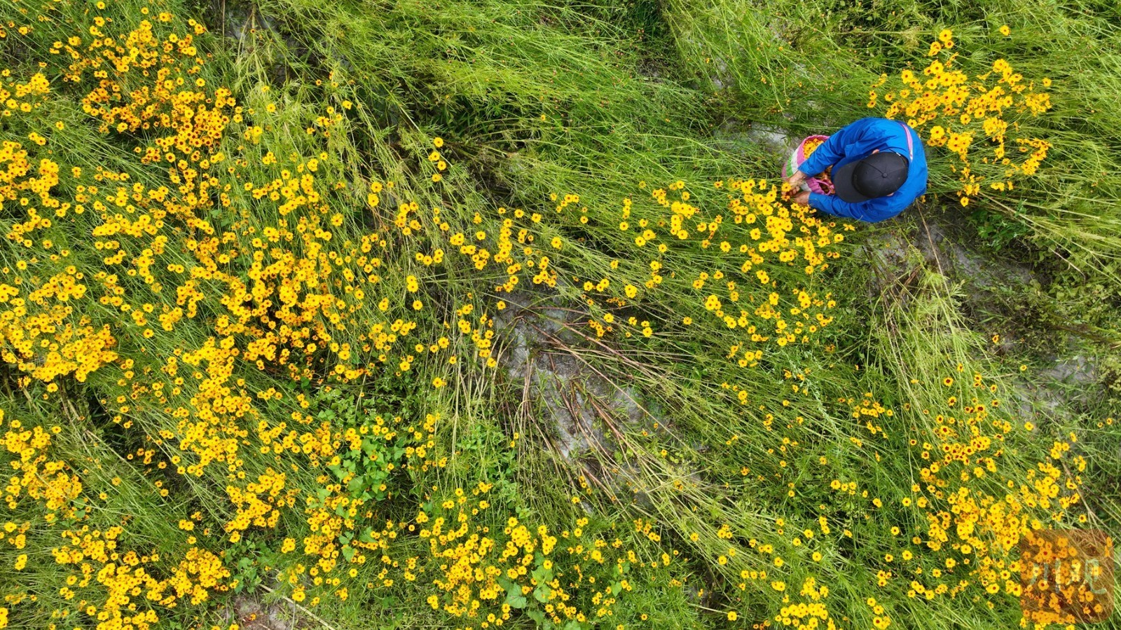村民忙着采摘雪菊,一朵朵盛开的雪菊花被村民收入“囊中”。