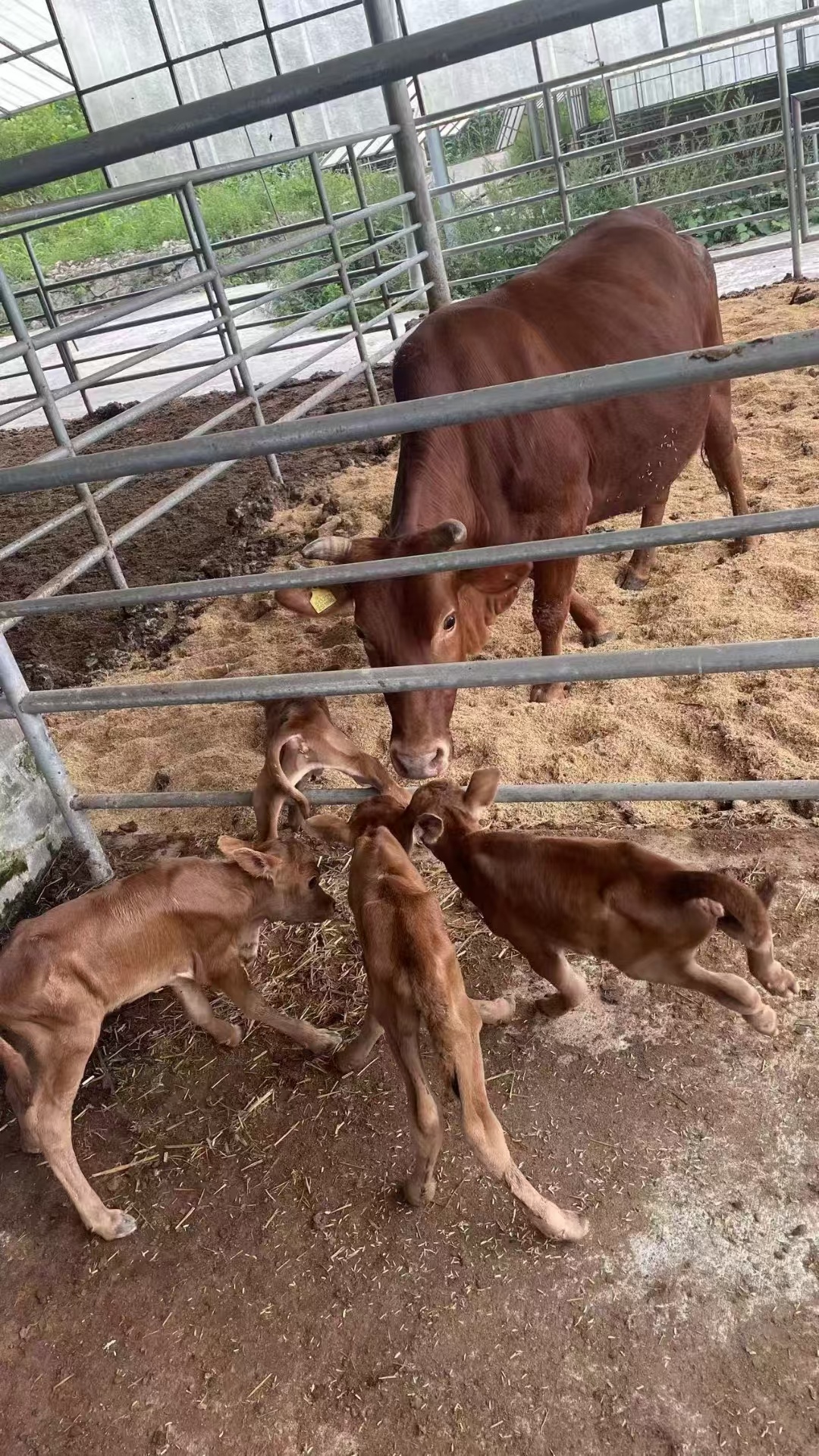 "牛一般都是单胎,也零星分布着一些多胎基因,但机率很低。“易军对此现象解释说,出现这种现象是好事,目前学术上也在研究牛的多胎现象,筛选牛的多胎基因。母牛一次生四胎,一般牛犊体质比较弱,要加强营养和护理。牛的子宫呈羊角形,多胎的话一般两胎就比较好。现在人工双胚胎移植技术已经成熟,在部分地区也在健壮母牛上进行应用,以提高种群的繁殖效率。