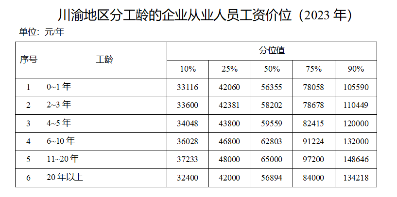 川渝地区2023年企业人均人工成本中位数为77500元/年。