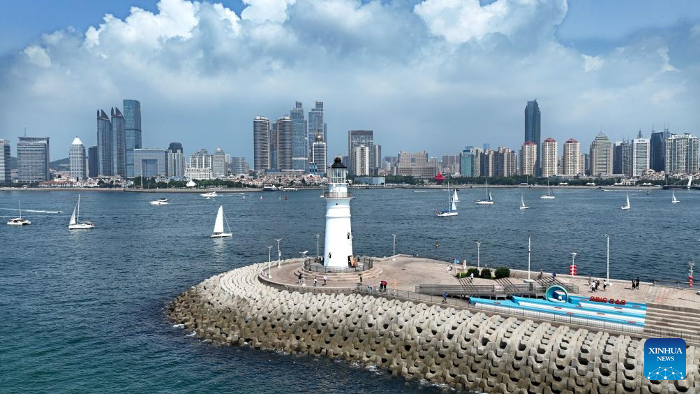 An aerial drone photo shows a view in Qingdao, east China's Shandong Province, Aug. 17, 2024. (Xinhua/Li Ziheng)