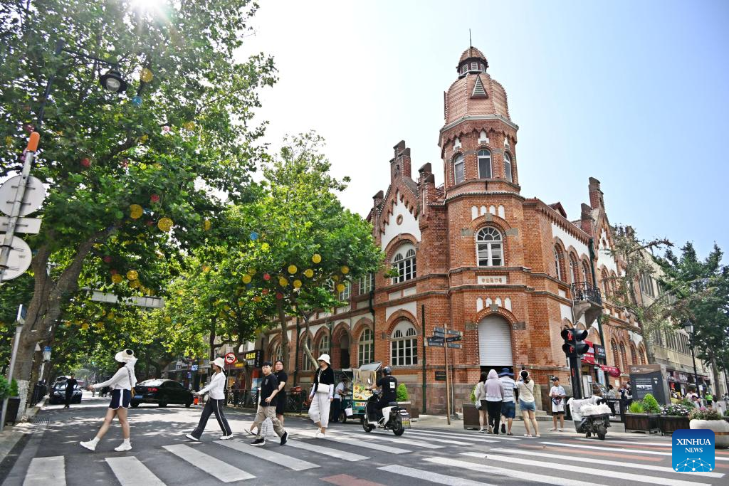 People walk at a historical block in Qingdao, east China's Shandong Province, Aug. 17, 2024. (Xinhua/Li Ziheng)