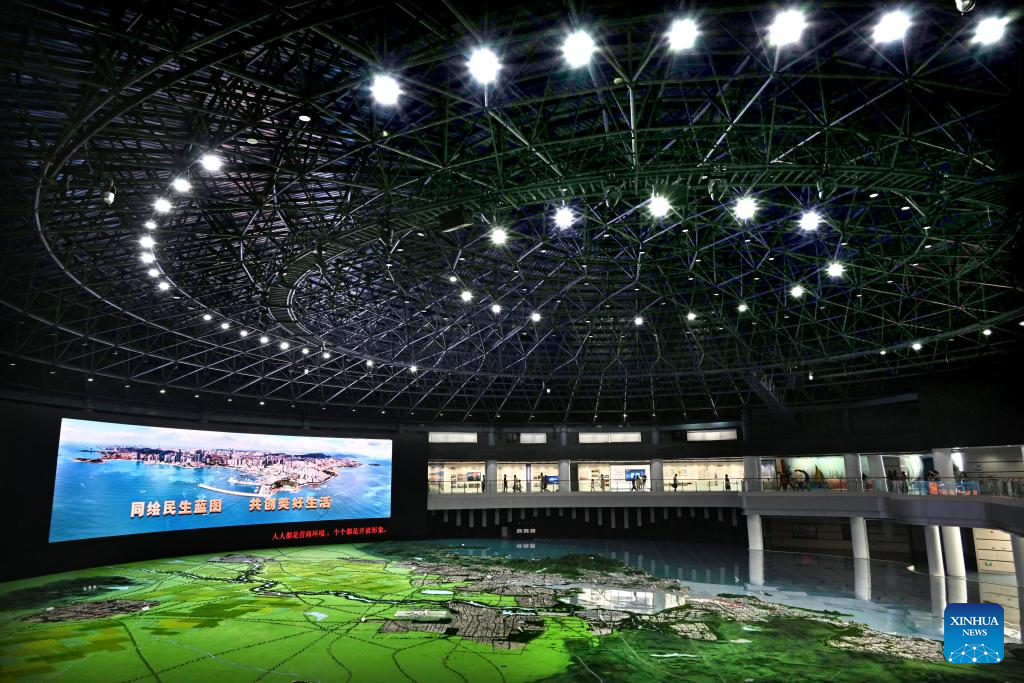 This photo shows people visiting city exhibition hall in Qingdao, east China's Shandong Province, Aug. 17, 2024. (Xinhua/Li Ziheng)