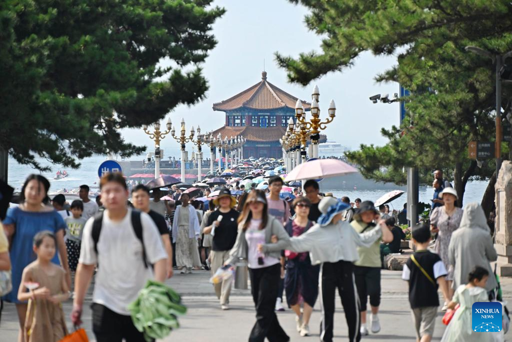 Tourists visit Zhanqiao Pier scenic spot in Qingdao, east China's Shandong Province, Aug. 17, 2024. (Xinhua/Li Ziheng)