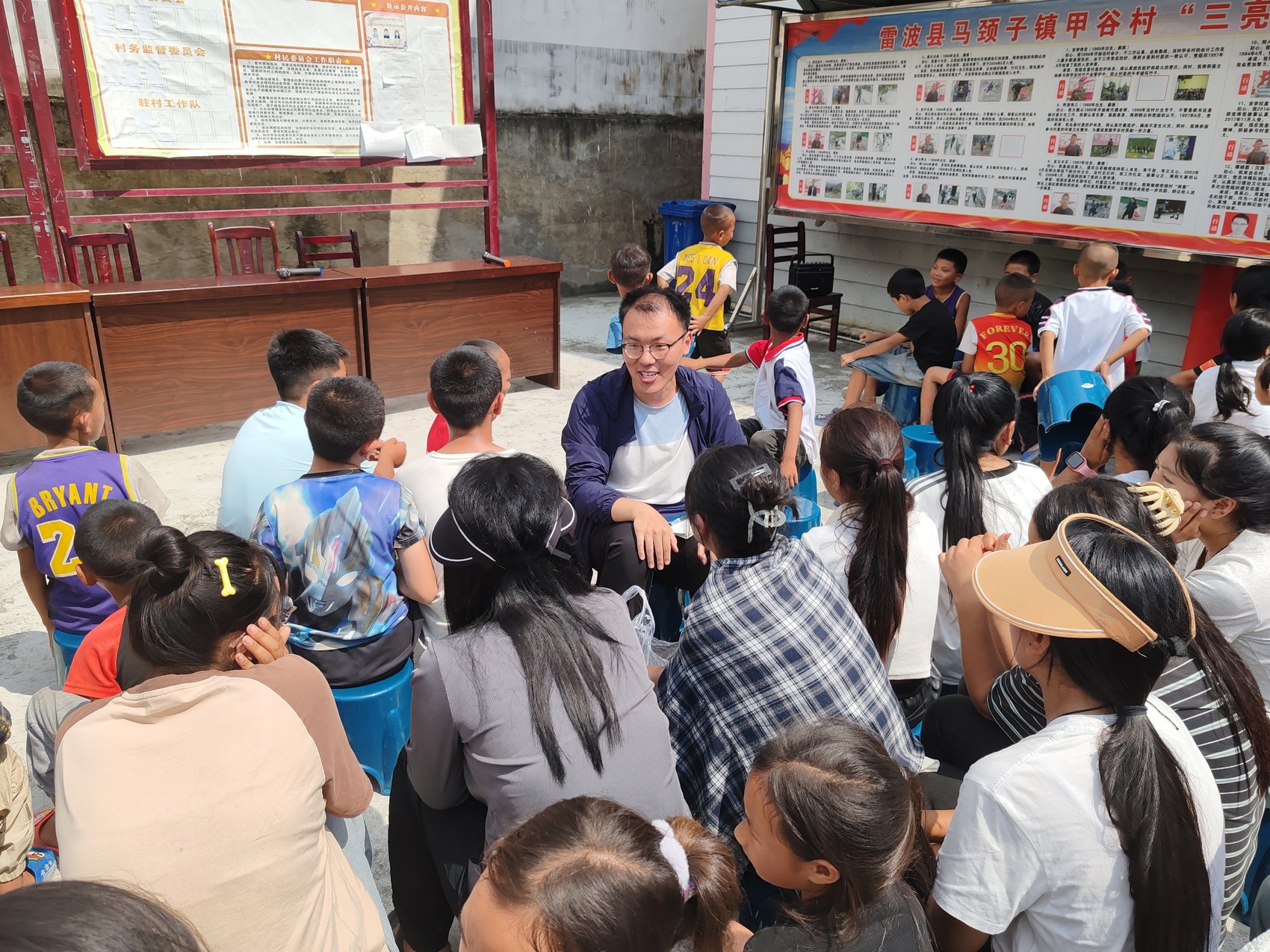 省纪委监委驻甲谷村工作队员向村里学生分享学习经验。