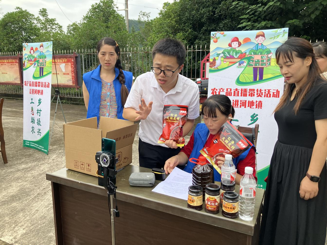 河地镇兴华村党支部书记谢艾军直播带货农特产品。
