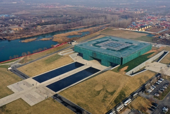 这是2024年2月26日拍摄的位于河南省安阳市的殷墟博物馆新馆(无人机照片)。新华社记者 李安摄