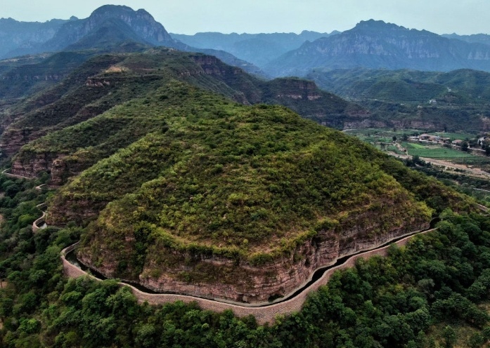 这是蜿蜒穿行于太行山间的红旗渠总干渠(2019年7月4日摄,无人机照片)。新华社记者 李安摄