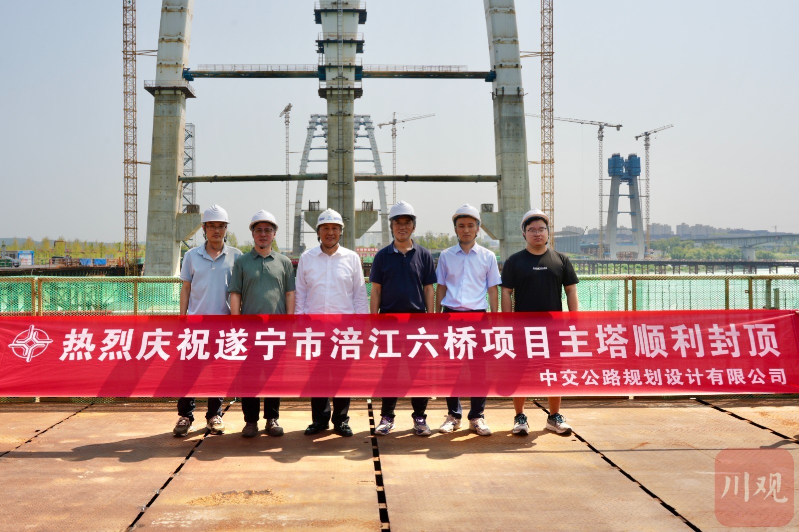 涪江六桥封顶现场。刘作鹏摄