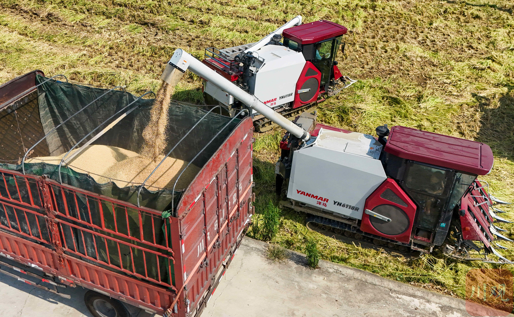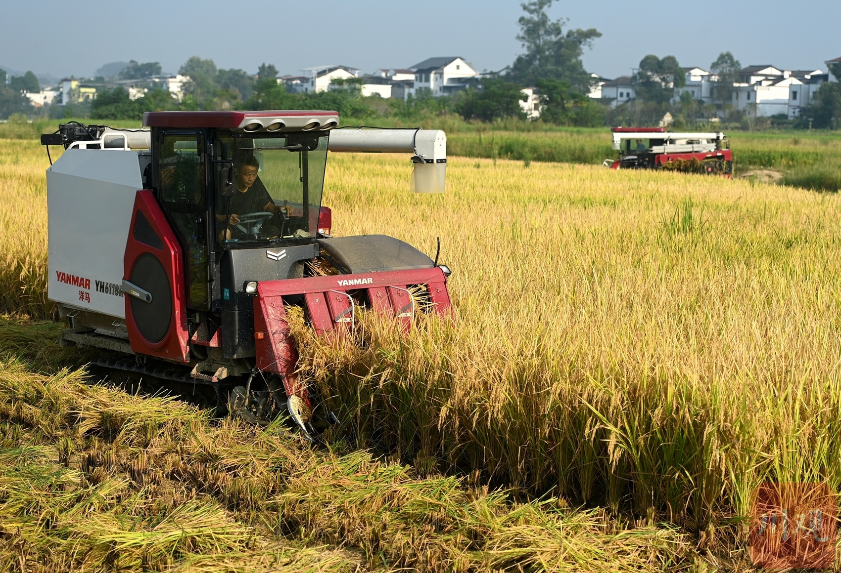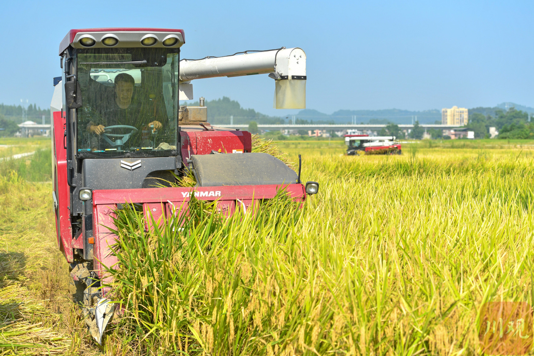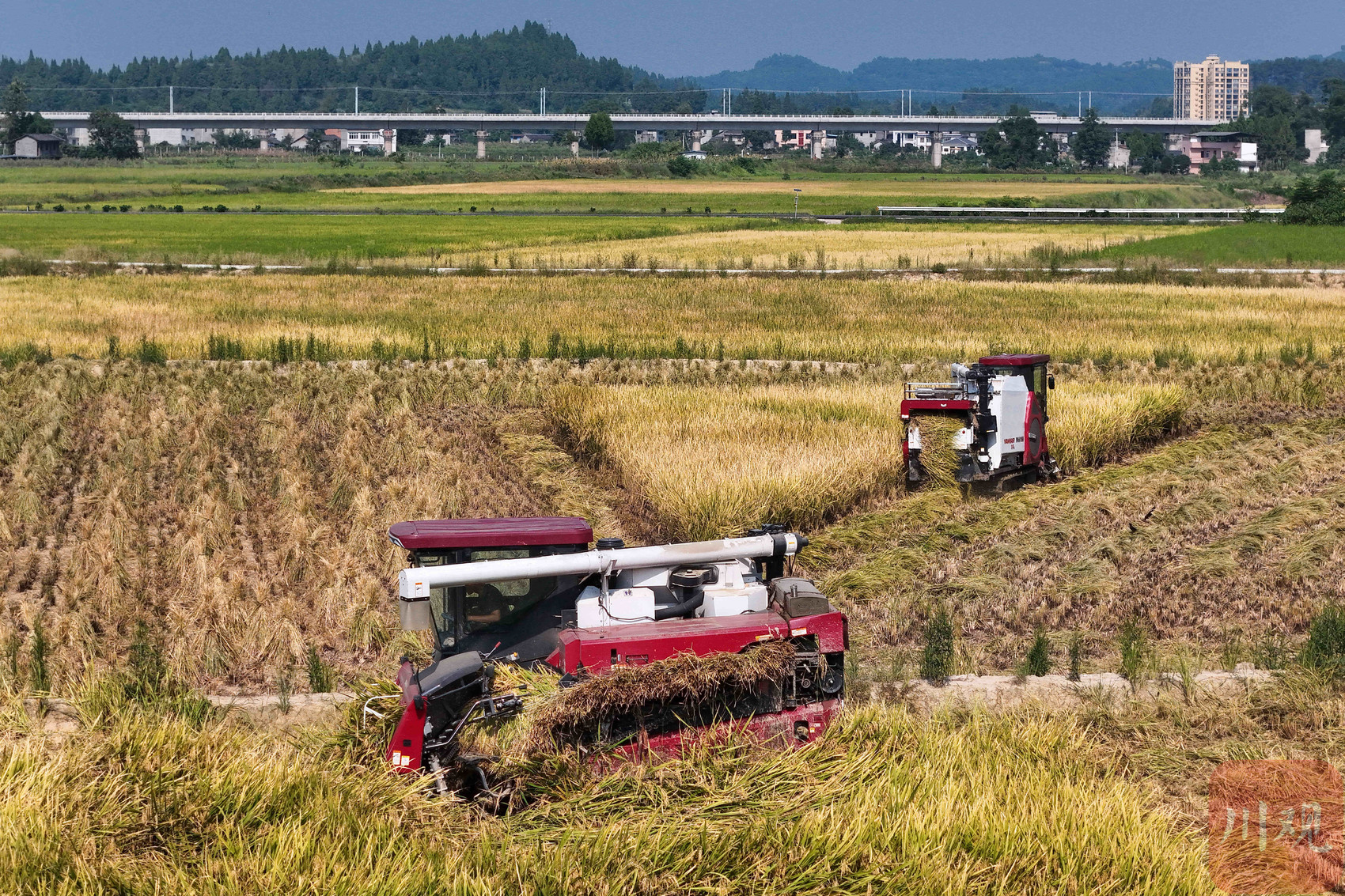 8月22日至23日,在南充市蓬安县睦坝镇武胜村,一台台现代化的收割机在广阔的田野里缓缓穿行,将沉甸甸的金黄稻穗卷入其中,收割、脱粒、转运等一系列自动化处理一气呵成,田间地头呈现一派繁忙的丰收景象。