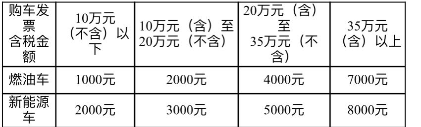 注意:购置新车须在2024年8月30日—9月20日期间,办理新车上牌须在2024年10月20日前完成。购车时间以机动车销售统一发票时间为准、新车上牌时间以机动车登记证注册日期为准。