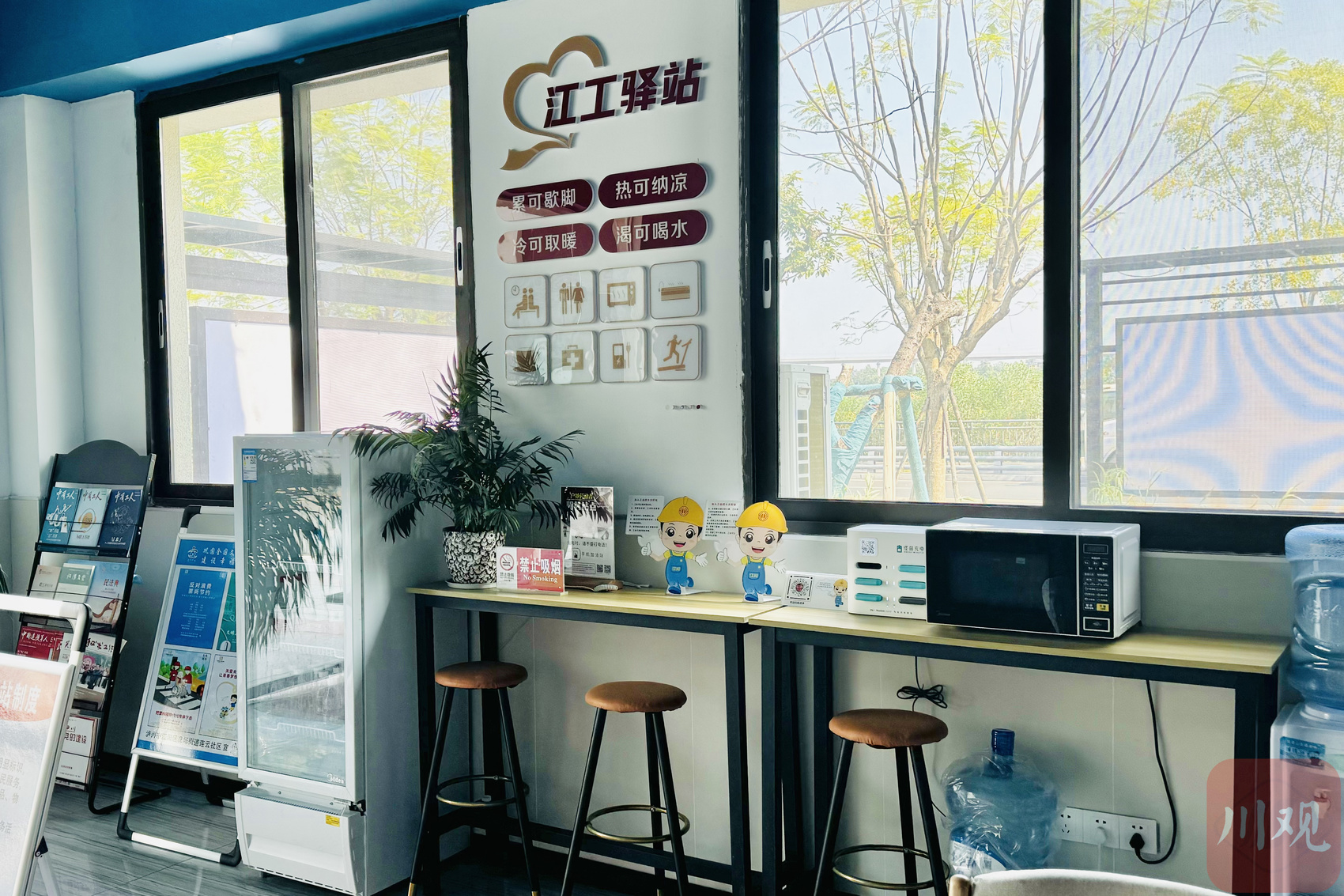 “我们希望打造冬可取暖、夏可避晒、饥可热饭、伤可用药多功能为一体的劳动者驿站,提升户外劳动者的获得感、满足感和幸福感。”泸州市龙马潭区安宁街道总工会副主席周婷说。
