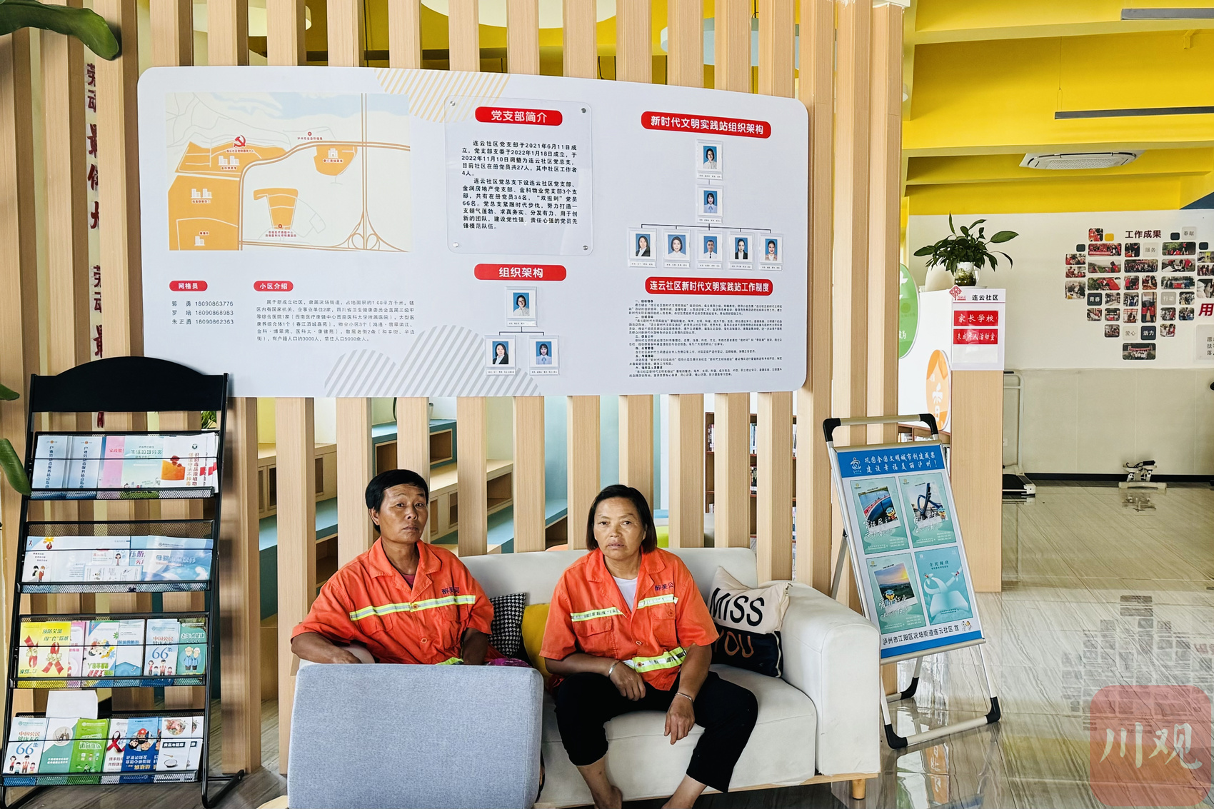 上午10时许,在泸州市龙马潭区福林社区的龙马·劳动者驿站里,6位环卫工人和园林绿化工人正在休息喝水。“天气热了在里面呆起凉快,中午也有地方热饭、吃饭。”环卫工人杨贵芳干了10多年卫生保洁工作,她说,以前没有站点,刮风下雨得找地方躲,夏天休息时间找树荫坐会儿又继续干活路,现在休息时间就有固定的去处休息,挺好。