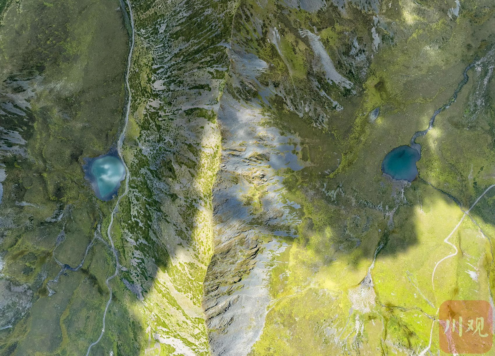 一道山脊隔开了两个海子。
