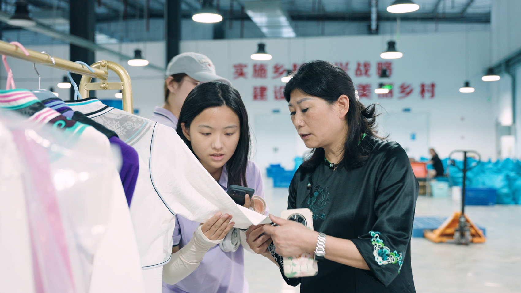 团队学生方子添在汶川东西部协作来料加工基地采访