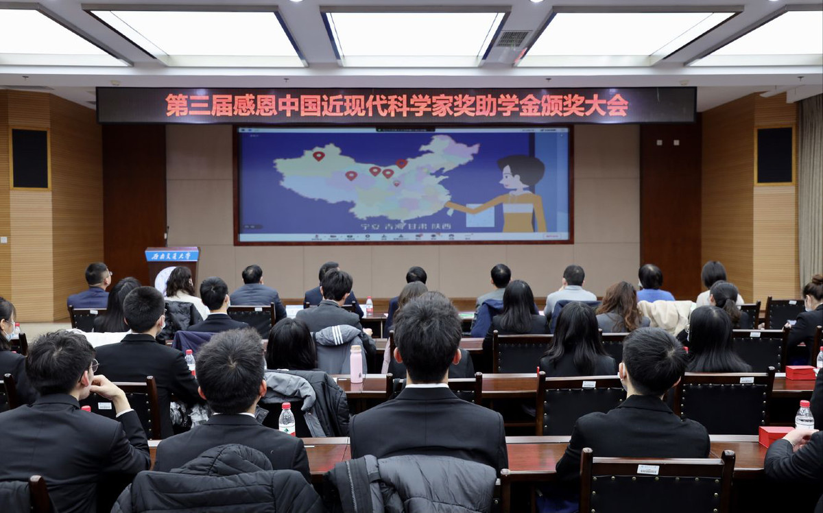 当天,第三届感恩中国近现代科学家奖助学金大会在西南交通大学举行,来自中国西部的27所“双一流”高校获奖代表通过线上会议参加。