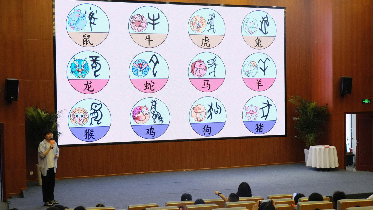 随后,四川大学古文字与先秦史研究中心的副研究员韩文博以“初识甲骨文”为主题,从“什么是甲骨文?”“甲骨文是如何产生的?”向现场观众讲解甲骨文的缘起,再结合甲骨卜辞和文字的具体实例,为读者进行生动形象的释读。例如,甲骨卜辞中“星率西”就是“流星”,这也是世界上最早的有关彗星的记录。而“日”“月”“上”“下”“为”“且(祖)”等甲骨文字的造字方法及演变衍生也令读者们感叹不已。