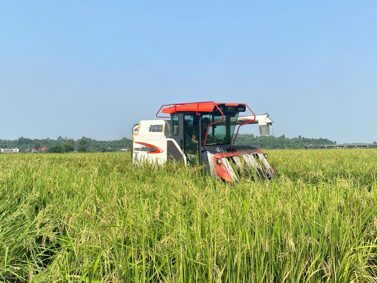 烈日当空,只见机手们熟练地操作割台,将制种水稻收割、脱粒、入仓;村民们默契分工,用三轮车将水稻转运至不远处的烘干加工中心。记者了解到,近年来,罗江以“五化”标准(标准化、规模化、集约化、机械化、信息化)实施田块归并、田型调整,配套集中育秧、种子加工等功能服务,全面提升制种基地基础设施建设水平。