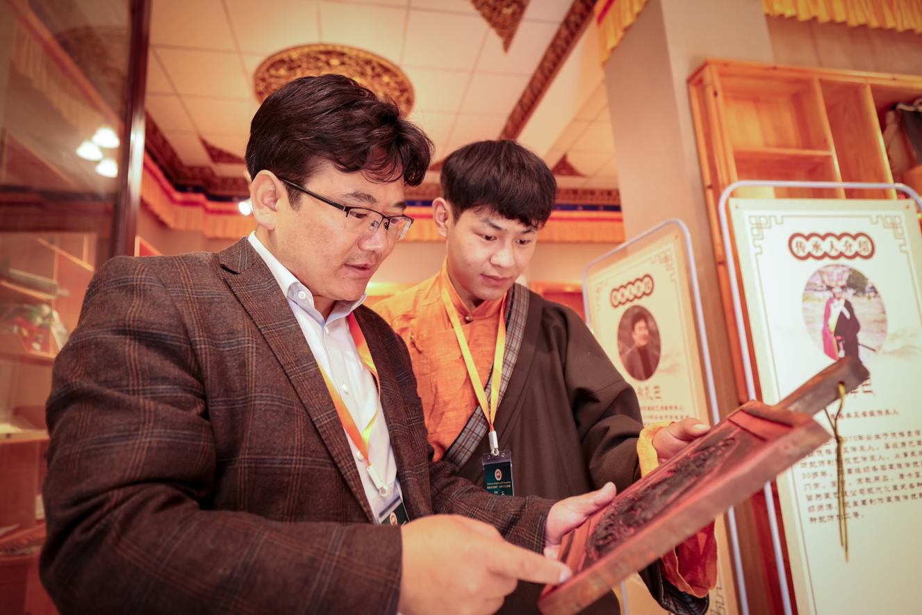 在康巴文都五行展馆,50名省州级非物质文化遗产项目传承人现场展示藏族金属锻造金银掐丝、德格印经院藏族雕版印刷技艺、麦宿木雕传统制作技艺、传统手工藏纸制作技艺、钦乐利马铜、堆绣唐卡和噶玛嘎孜画派等17项非遗项目。