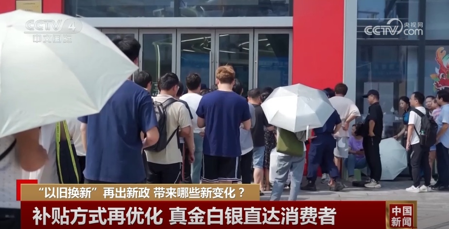 此次以旧换新不仅优惠力度大,消费者获取补贴也更加快速便捷。在湖北武汉的这家商场外,市民们在门口就排着长队等待参与以旧换新活动。