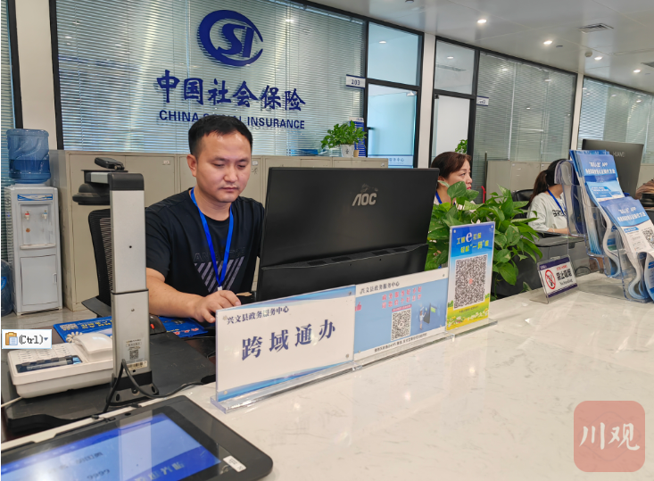 在兴文县政务服务中心,灵活就业人员参保登记窗口的工作人员胡国勇正热情为前来办事的叙永群众办理业务,“叙永群众的办事流程和兴文群众的办理流程都是一模一样的,只需要提供身份证和户口本复印件,就可以办理参保登记”, 胡国勇介绍。