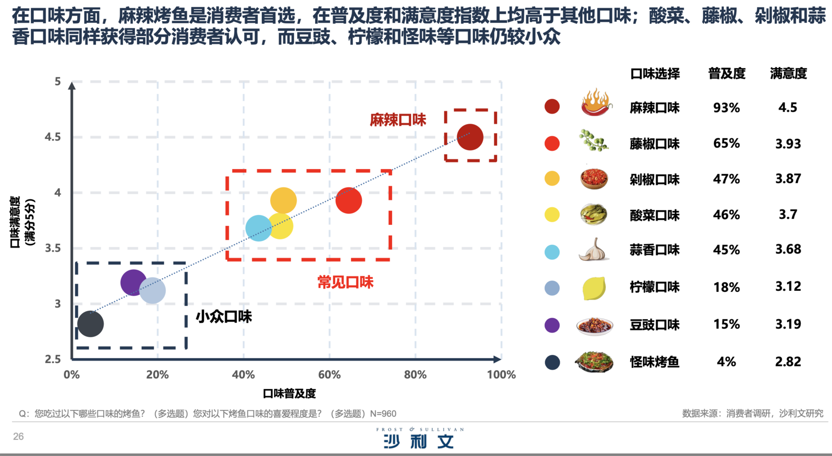 麻辣口味不可撼动的江湖地位给了专注麻辣烤鱼的烤匠巨大的成长空间。报告指出,烤匠在成渝两地所有烤鱼品牌中获得了消费者最高的消费意愿和推荐意愿。同时,对烤匠的就餐服务满意度、餐厅环境满意度和口味满意度均为最高。基于市场超高人气,沙利文将烤匠评选为“成都重庆烤鱼第一品牌”和“全国专业麻辣烤鱼第一品牌”。