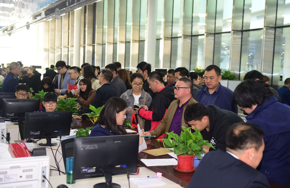 2017年4月10日,中国(辽宁)自由贸易试验区沈阳片区揭牌当日,众多企业咨询注册。新华社记者杨青摄