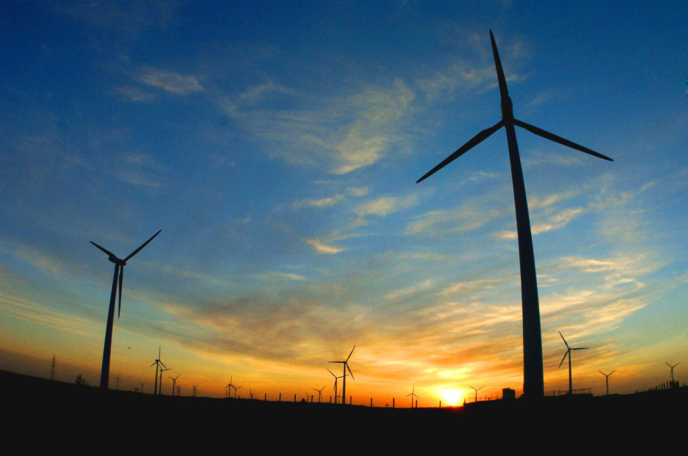 2005年,吉林省白城市通榆县境内几十部风力发电机组在工作。新华社发