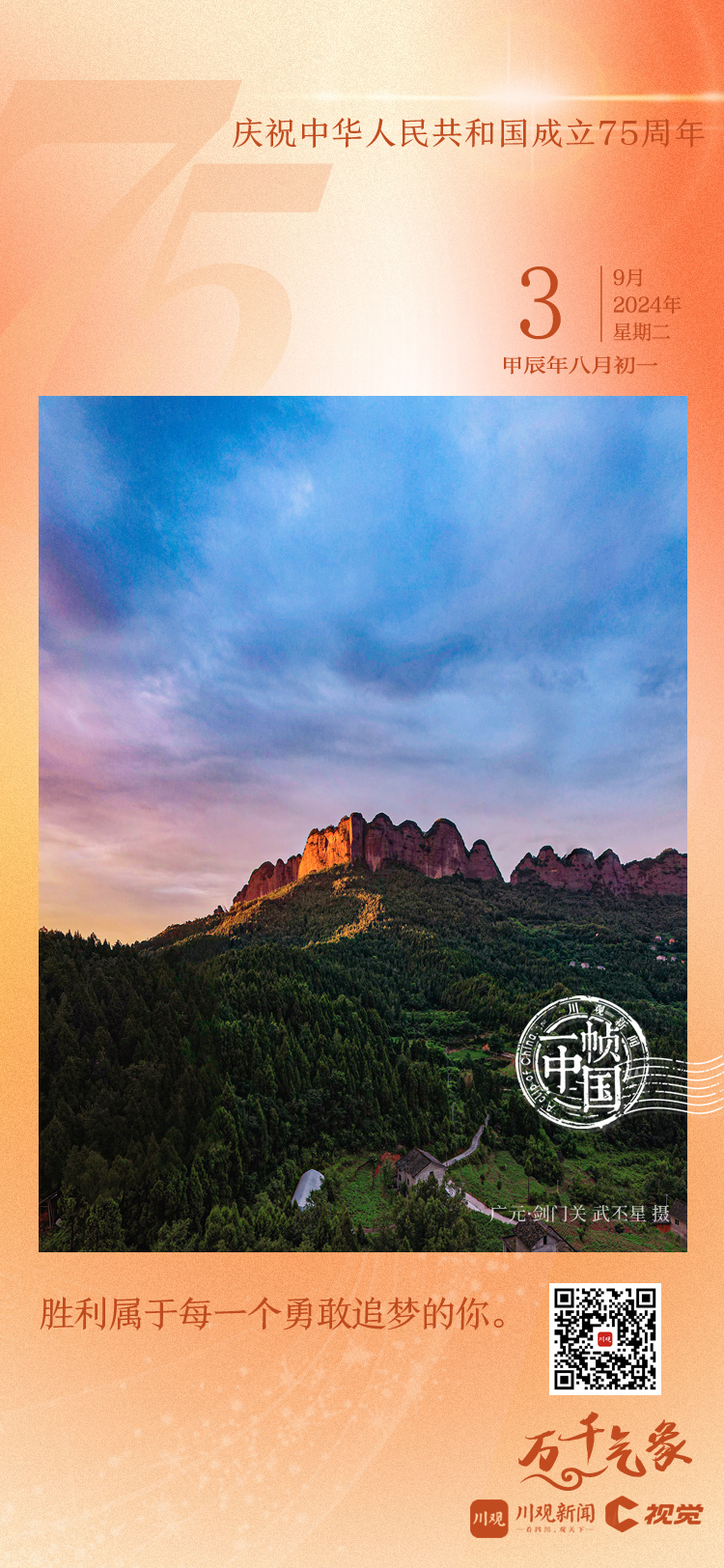 今天距离2024年国庆节还有28天,川观新闻《一帧中国》带你来到广元剑门关景区,从另一个角度远眺剑门绝壁的雄奇壮丽。