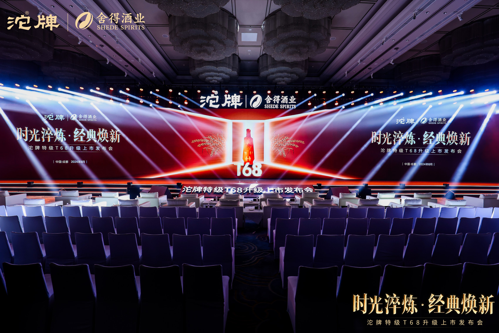 8月26日,舍得酒业在成都举行产品发布会,隆重推出旗下沱牌特级T68为代表的大众消费领域产品系列。