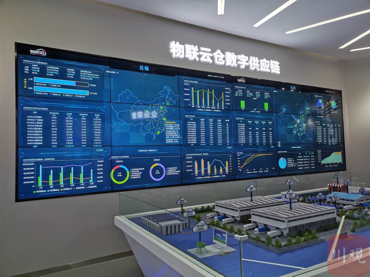 给物流插上科技的“翅膀”,邓波公司墙上的有“物联云仓”数字展示屏给予了更直观的解释——屏幕上实时更新、记录着“物联云仓”的仓储面积、仓库数量、可租面积以及物流配送数据等信息。