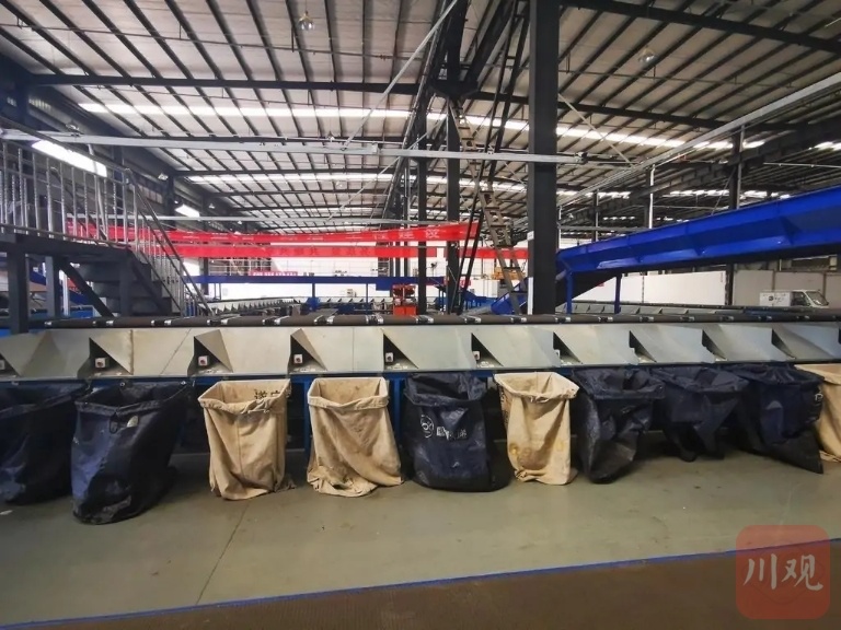 在他身后,一台智能全自动交叉分拣设备正在车间作业。卸货、拍照、分拣......设备通过高速拍照的方式,按区域划分,自动分拣到遂宁的快递。