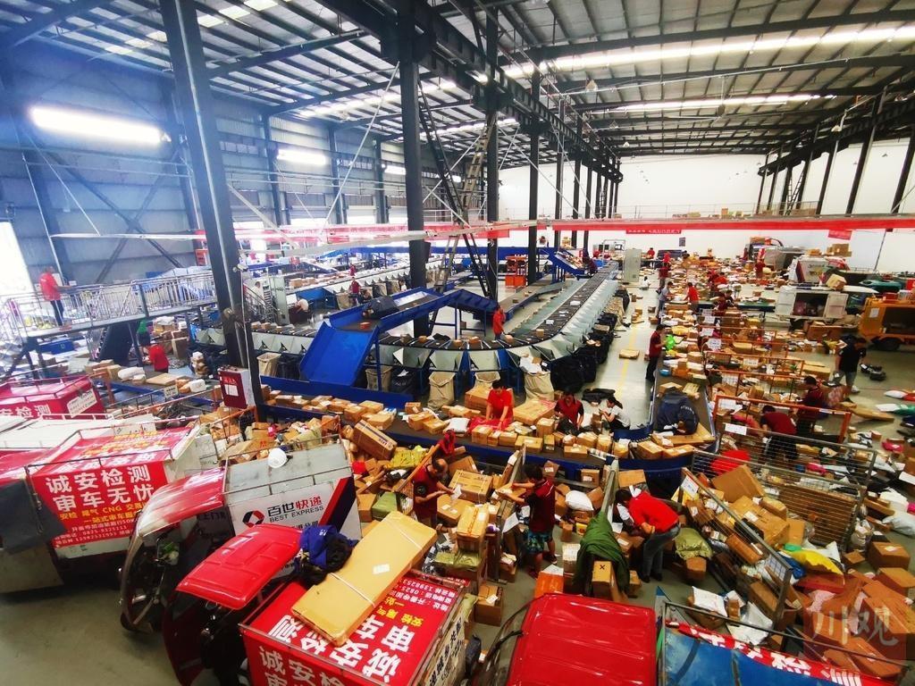 这是快递分拣效率变高的秘密“法宝”。“自从去年9月,公司购入了这台设备,快件分拣就被‘提了速’,每小时能分拣1万件,最高每天能分拣10万件。”公司总经理蔡毅说。